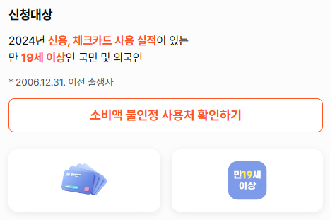 2024년 카드 사용 실적이 있는 경우에만 신청이 가능합니다.