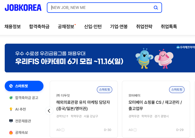 신입·경력 모두에게 안정적인 구직 지원을 제공하는 만큼, 처음 취업 준비를 시작하는 분들께 적합합니다.
